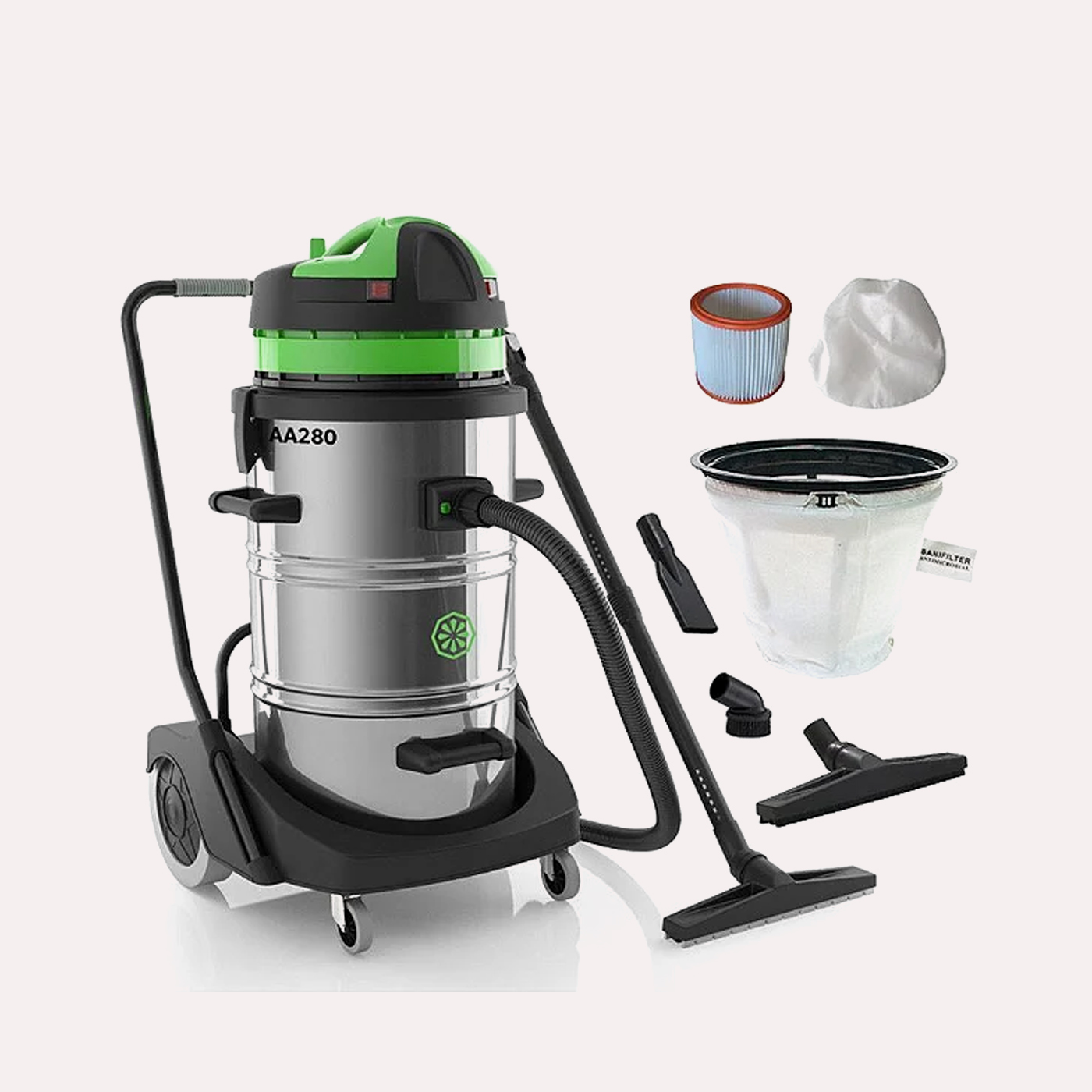 O Aspirador Profissional AA280 IPC é a solução perfeita para limpeza de alta produtividade em empresas, indústrias, postos de trabalho e ambientes com grande volume de resíduos. Com tanque de 89,2 litros e 2 motores Ametek de 1200W cada, entrega potência total de 2400W, garantindo sucção intensa e limpeza eficiente de sólidos e líquidos.